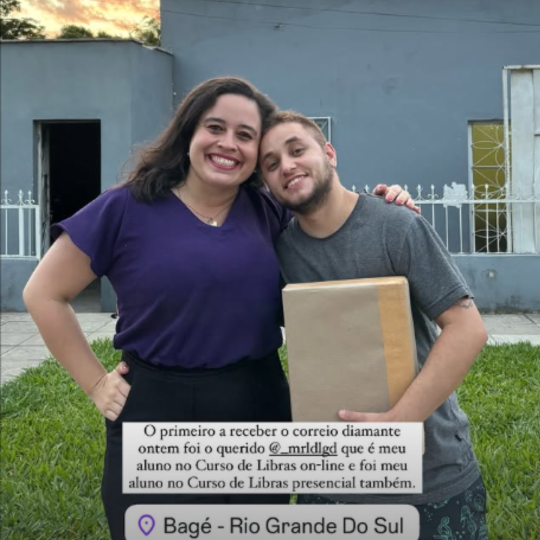 - Jaine recebendo o seu correio diamante em Bagé/RS.