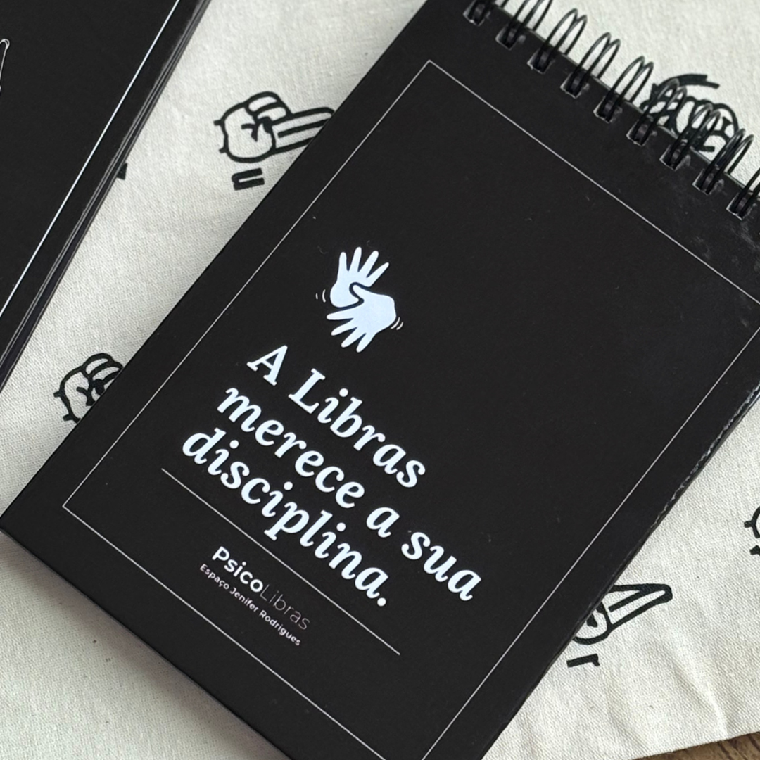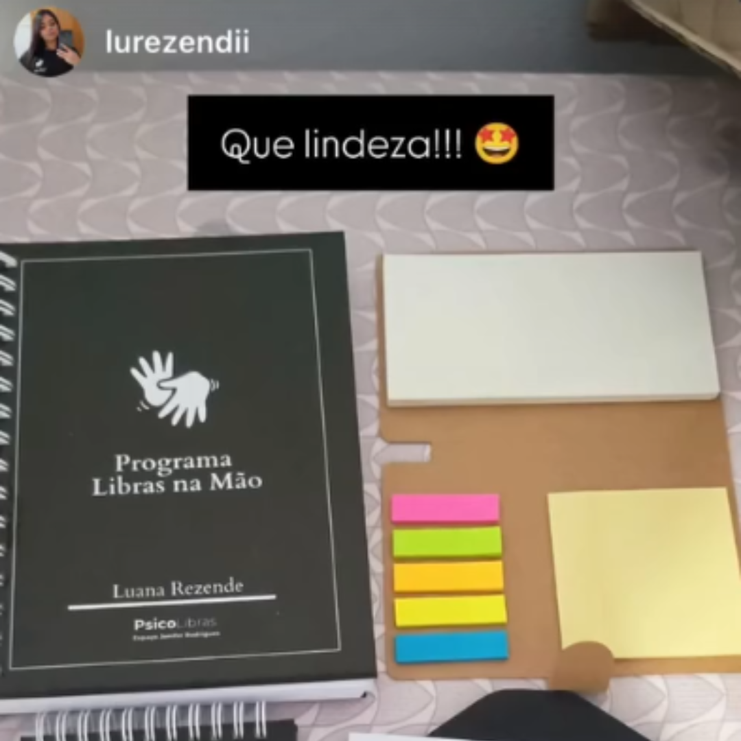 - Caderno de estudos com o seu nome em Libras