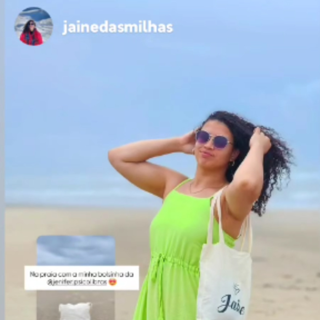 - Jaine usando a sua bolsa nas praias de Florianópolis/SC.