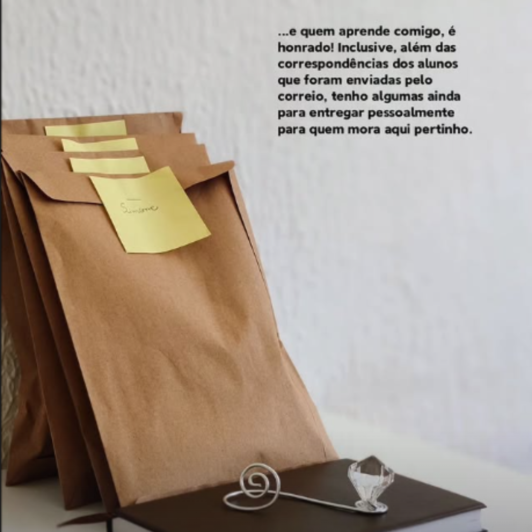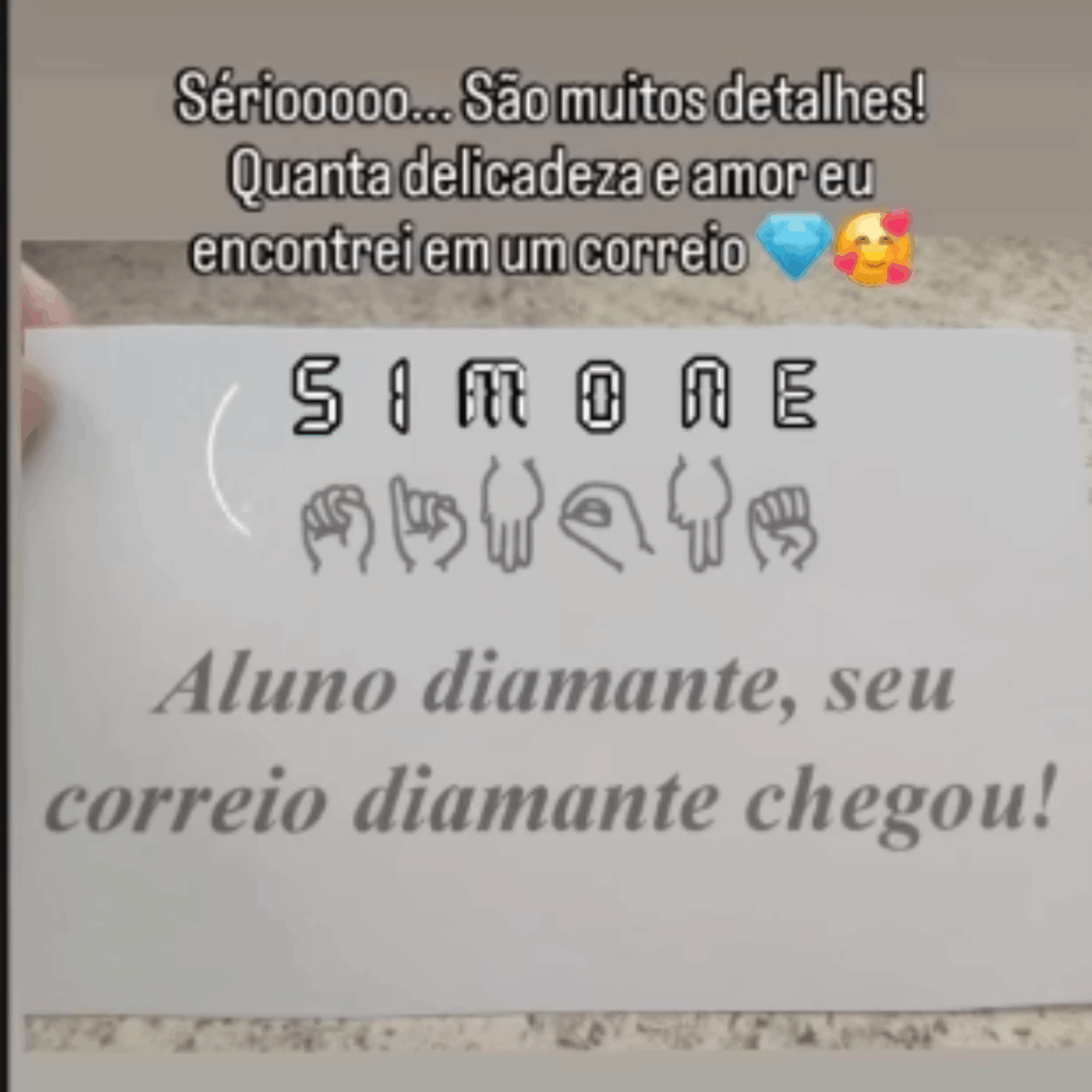 A Thalita foi a primeira aluna a se matricular na empresa Espaço Jenifer Rodrigues e, quando recebeu o seu correio diamante, também recebeu uma carta escrita à mão contando à ela sobre isso. Depois da Thalita, muitos outros alunos chegaram até nós. Mas, foi com a Thalita que tudo começou!