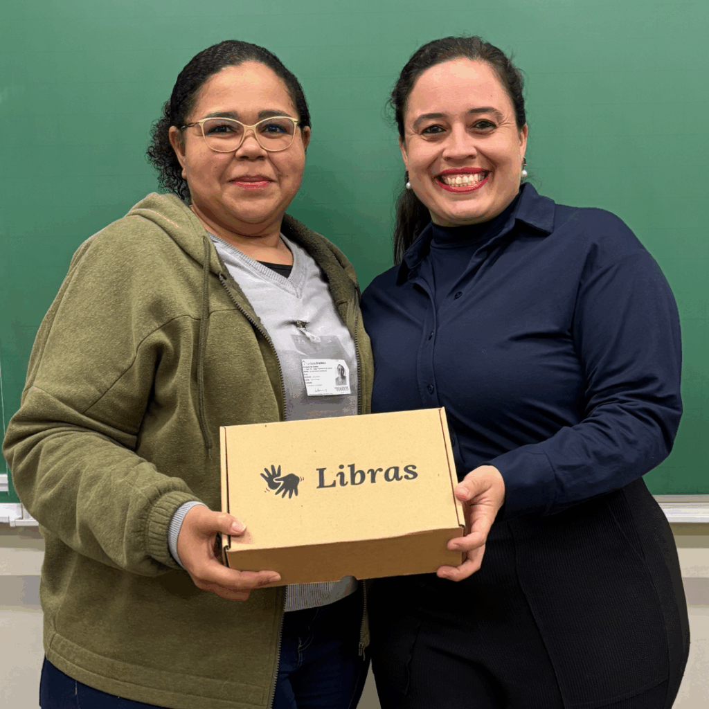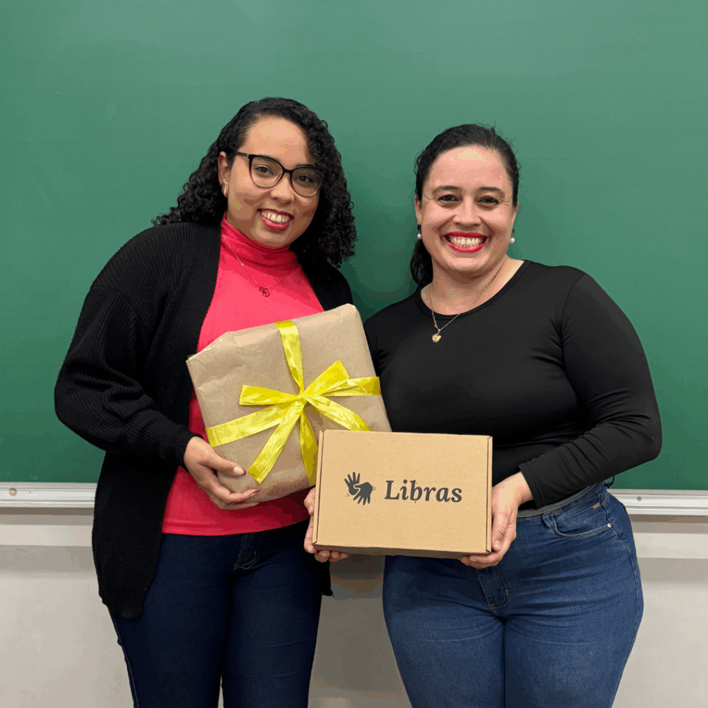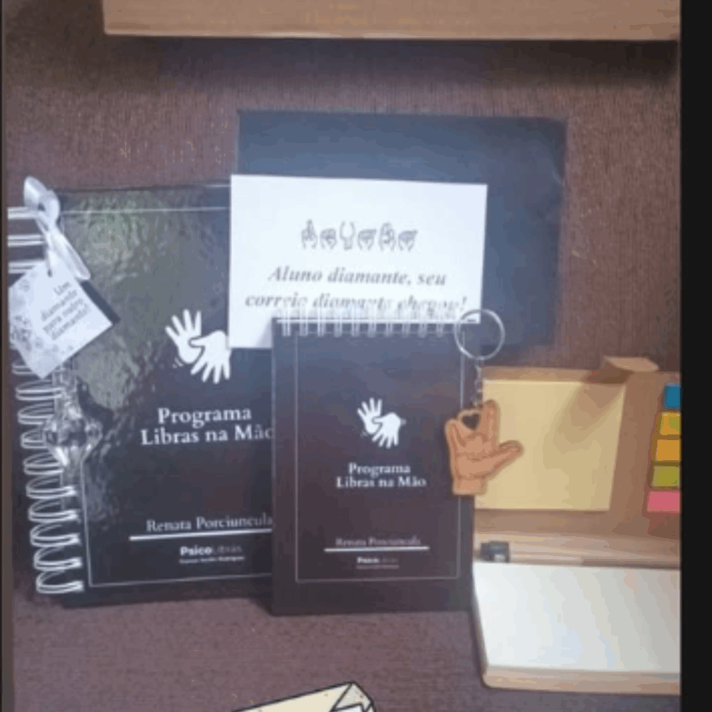 Um presente simbólico que celebra o seu compromisso com a Libras e com o seu próprio crescimento.