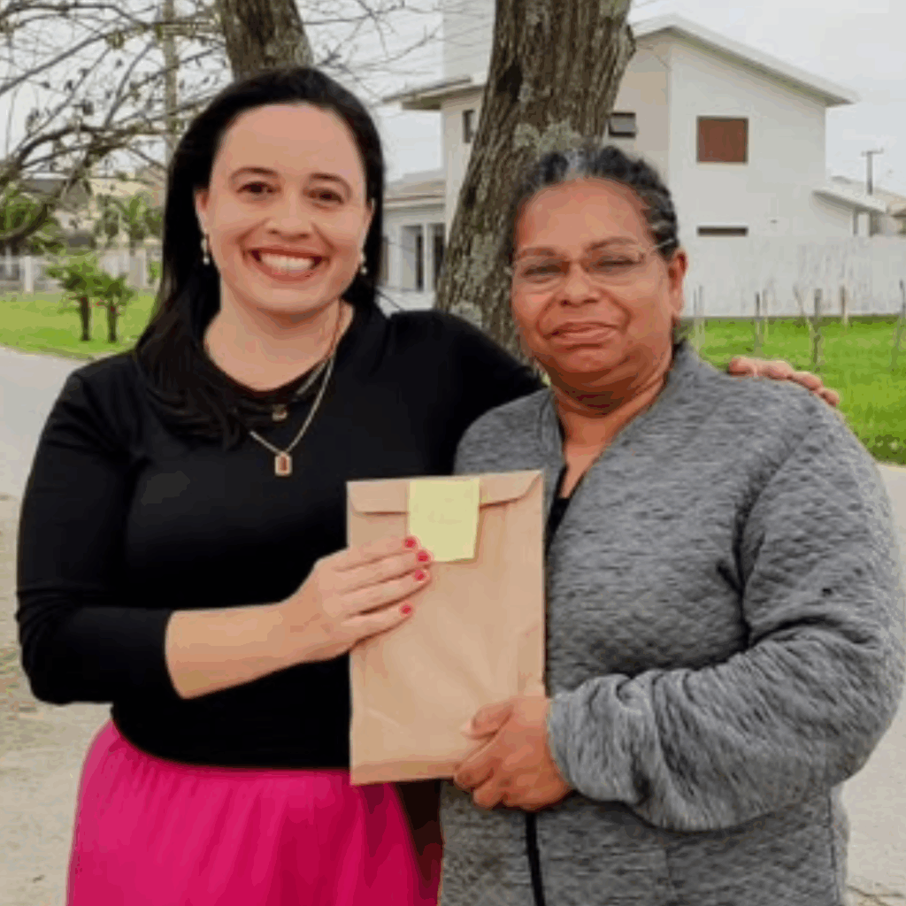 - Andreia recebendo o seu correio diamante, em Pelotas/RS.