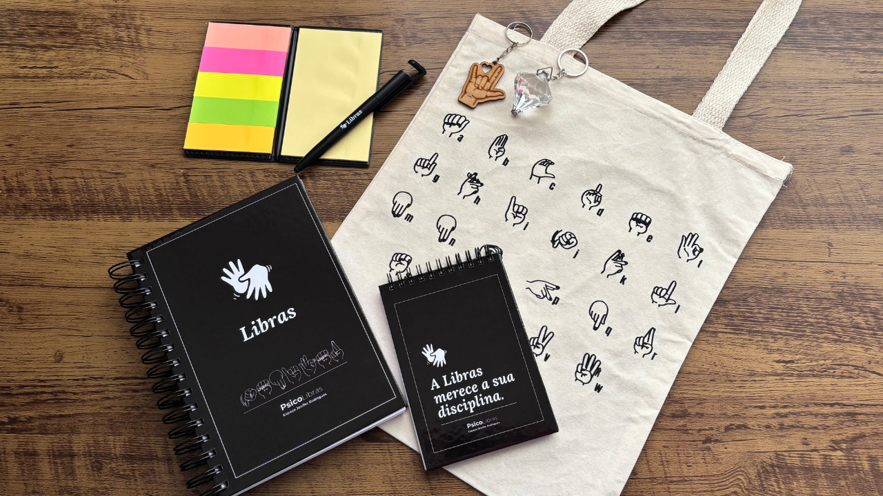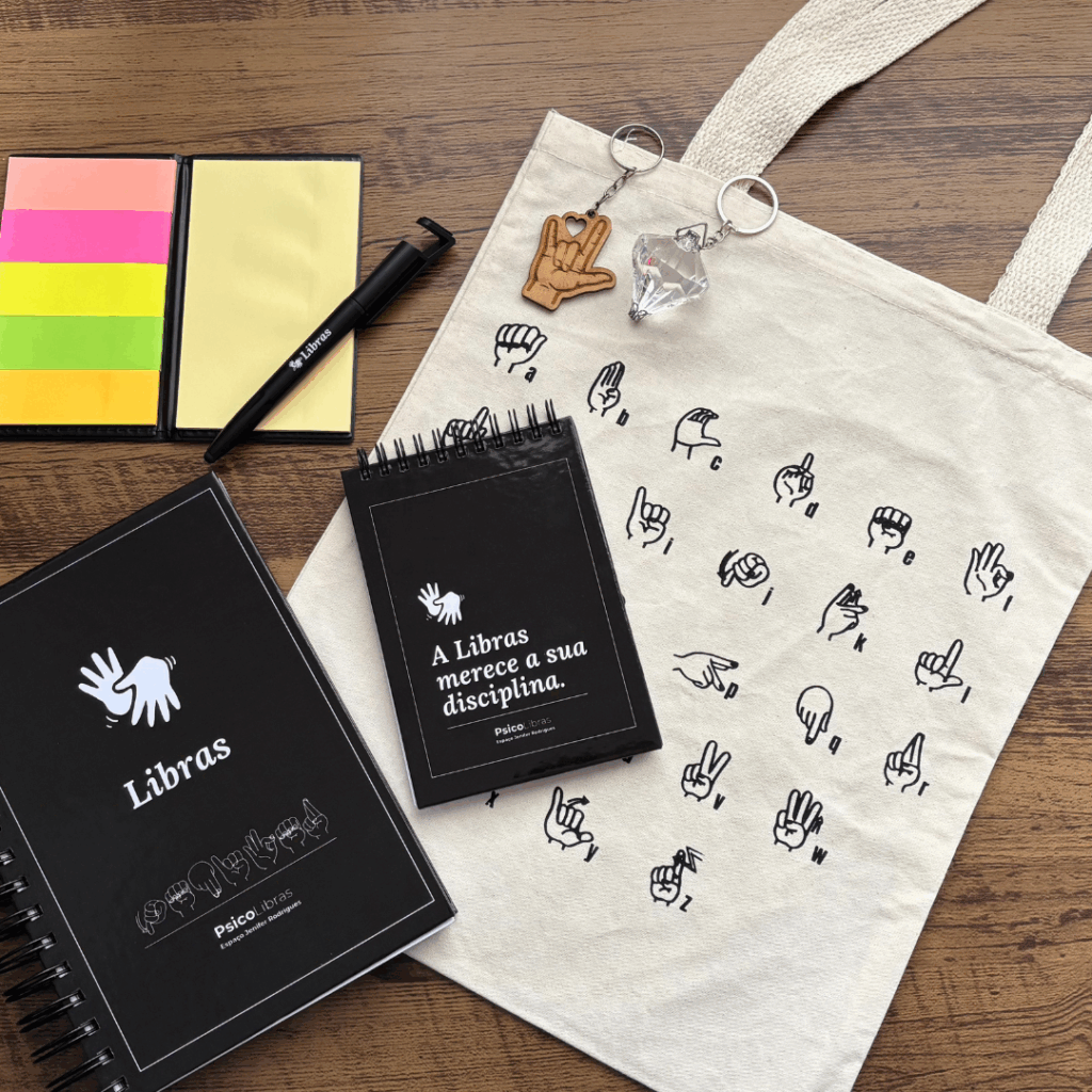 Cada kit é preparado com muito carinho e cuidado, pensado para inspirar seus estudos em Libras e tornar sua rotina mais prazerosa.